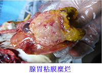 谷鳳柱教授稱,正因為上述霉菌及霉菌毒素?zé)o處不在的特性,所以只要是雞群能夠接觸到的地方,如:飼料、飲水、環(huán)境、網(wǎng)盤、墊料、粉塵等都有它們的存在。最常見又直觀的是它們對雞的內(nèi)臟器官的損傷,如:腺胃壁腫脹與水腫,有彈性并外翻,嚴(yán)重時粘膜糜爛;若偶有腺胃壁松弛,則多見為嘔吐毒素侵害所致;若腺胃乳頭消失,以致壞死崩解變薄,則多為嘔吐毒素+T2毒素共同導(dǎo)致的。下面是谷教授給我們分享的部分病理解剖圖片: