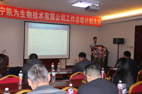 2017年1月6日下午,寒冷冬日,暖陽(yáng)高照,美麗的渤海之濱錦州,遼寧凱為生物技術(shù)有限公司2016年工作總結(jié)和2017年工作計(jì)劃大會(huì)在華信大廈會(huì)議廳隆重舉行,遼寧凱為自2005年創(chuàng)建以來(lái),歷時(shí)11年的發(fā)展歷程,我們積累了經(jīng)驗(yàn),也展示了多年的成果,展望2017年未來(lái)的發(fā)展重點(diǎn)和方向,現(xiàn)在,凱為人踏著夢(mèng)想而來(lái),滿載而歸。未來(lái),凱為人堅(jiān)定地為公司添磚加瓦、壘筑高臺(tái),讓夢(mèng)想更加豐滿,讓基業(yè)更加長(zhǎng)青。整個(gè)會(huì)議歷時(shí)三個(gè)小時(shí),包括總經(jīng)理王鐵良先生作年度工作總結(jié)、計(jì)劃報(bào)告,銷售部總經(jīng)理趙福寬先生作銷售部年度工作總結(jié)、計(jì)劃報(bào)告,優(yōu)秀員工表彰等環(huán)節(jié)。會(huì)議進(jìn)行中,掌聲數(shù)次響起,整個(gè)會(huì)場(chǎng)始終洋溢著振奮、進(jìn)取、熱烈的氣氛,精彩紛呈,亮點(diǎn)鮮明。