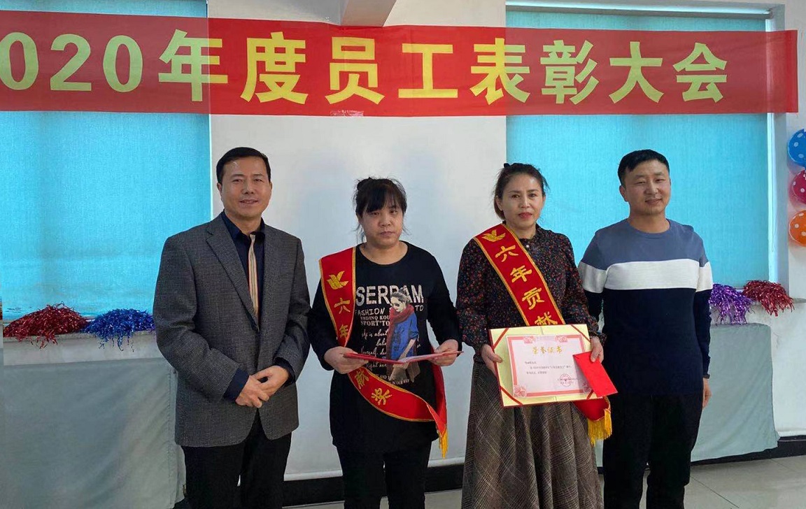 閆希東、薛曉娟獲得2020年度十年貢獻(xiàn)獎(jiǎng),十年的堅(jiān)守不渝,十年的默默耕作,他們把最美好的青春韶華賦予了我們?yōu)橹餐瑠^斗的事業(yè),十年如一日他們時(shí)刻心系企業(yè)的憂患,與企業(yè)同風(fēng)雨共命運(yùn),正是因?yàn)樗麄兊母冻鰟P為的今天才如此絢麗。公司總經(jīng)理王鐵良與銷售部經(jīng)理趙福寬為獲獎(jiǎng)?wù)哳C發(fā)榮譽(yù)證書。